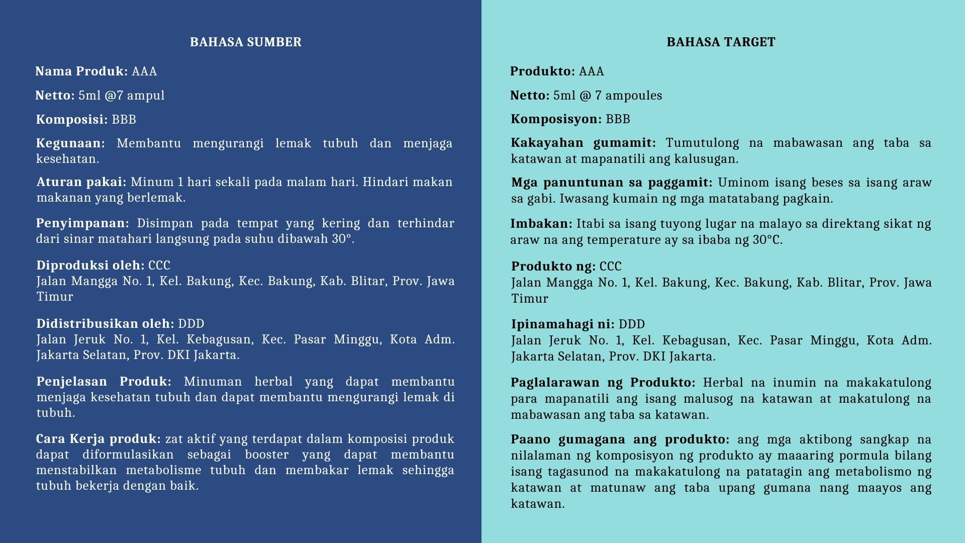 Contoh Terjemahan Bahasa Indonesia ke Tagalog